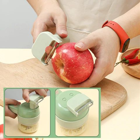 4 w 1: krojenie, mielenie, obieranie i szczotka do czyszczenia.